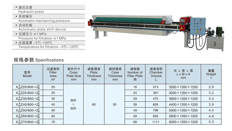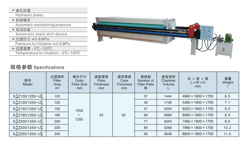 1、采用液壓系統(tǒng)控制,電氣控制元件均采用名牌產(chǎn)品,可實(shí)現(xiàn)手動(dòng)控制和全電腦程序自動(dòng)控制采用液壓裝置作為壓緊,松開濾板的動(dòng)力結(jié)構(gòu),