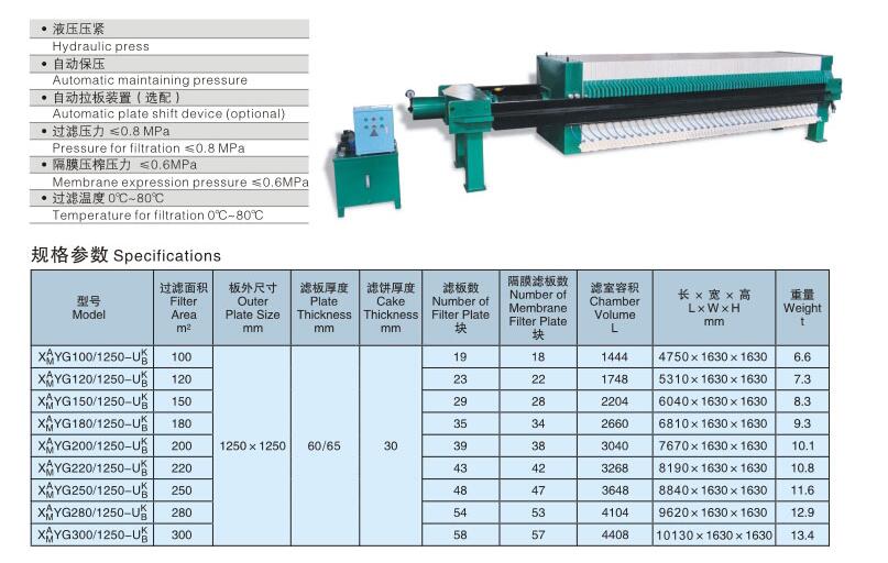 1、隔膜壓濾機采用過濾工藝,由我公司在國內*生產。該機主要用于降低物料中的水分,可提高含固率8%~35%;